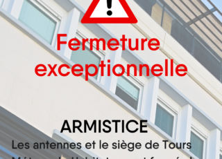 ARMISTICE Fermeture du siège de Tours Métropole Habitat et des antennes le lundi 10 et le mardi 11 novembre 2025. Réouverture le mercredi...